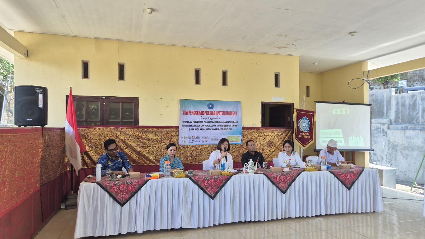 Kegiatan Sosialisasi Percepatan Pelaksanaan Pembatasan Penggunaan Plastik Sekali Pakai dan Pengelolaan Sampah Berbasis Sumber (PSBS) yang dilaksanakan oleh Tim Penggerak PKK Kabupaten Buleleng bertempat di TK Kertha Sari Kumara Desa tampekan